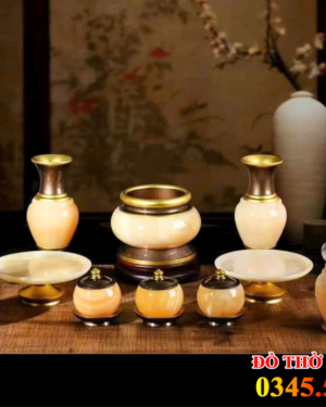 Trọn Bộ Đồ Thờ Ngọc Viền Đồng