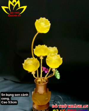 Đèn Thờ Hoa Sen 5 Bông Lưu Ly Cao Cấp